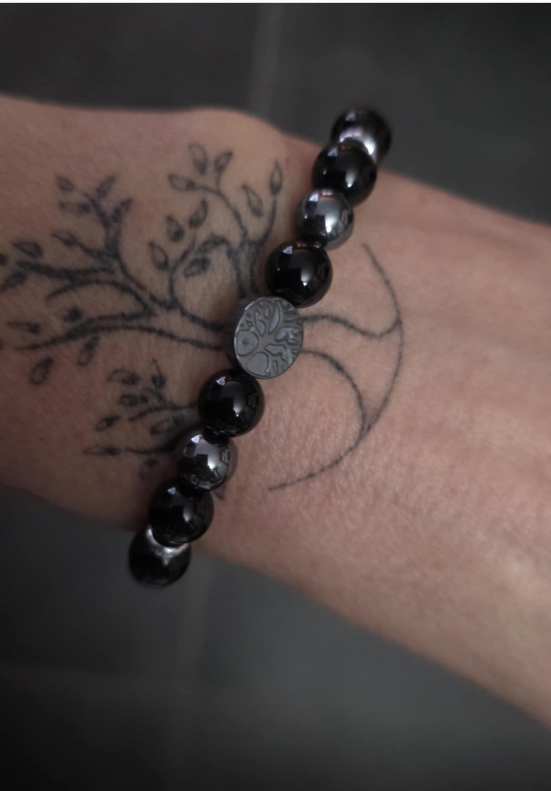 Bracelet perles noirs avec arbre de vieBracelet perles noirs avec arbre de vie
